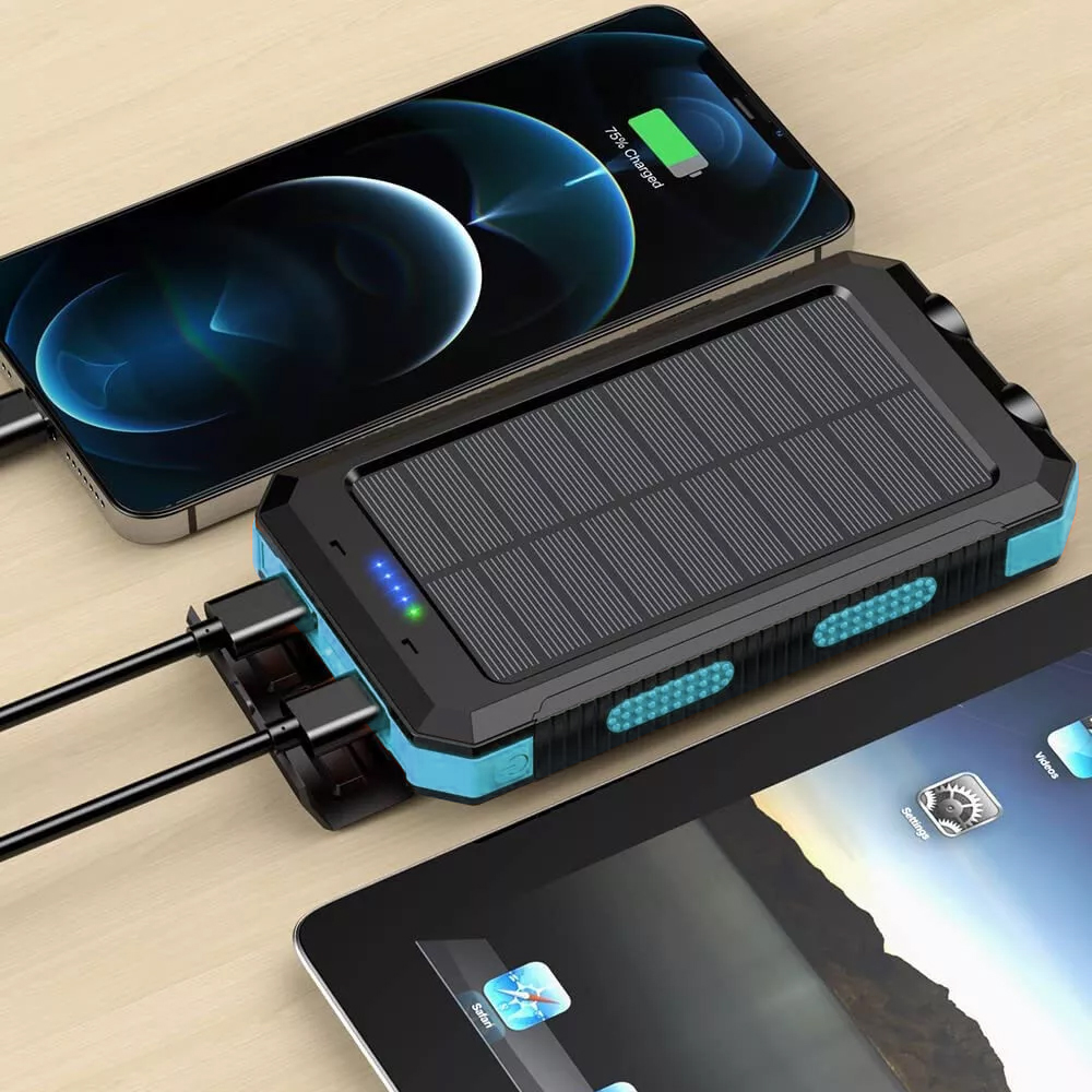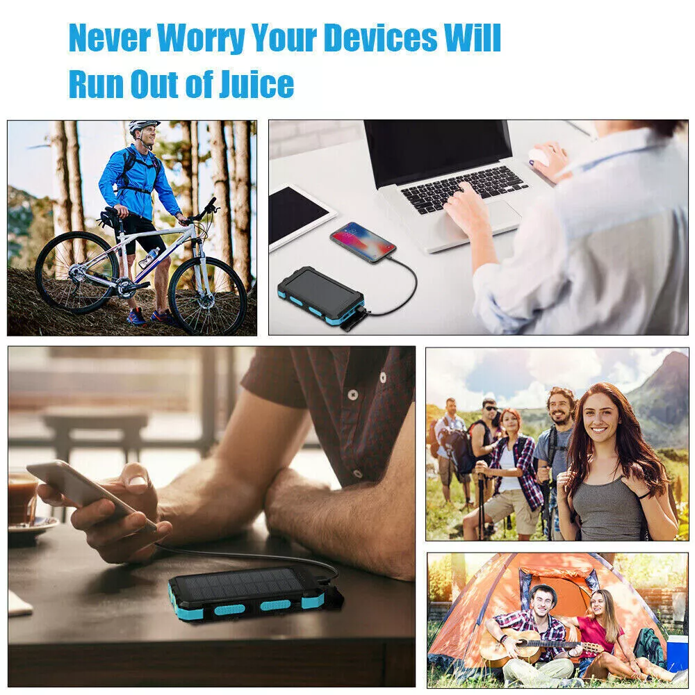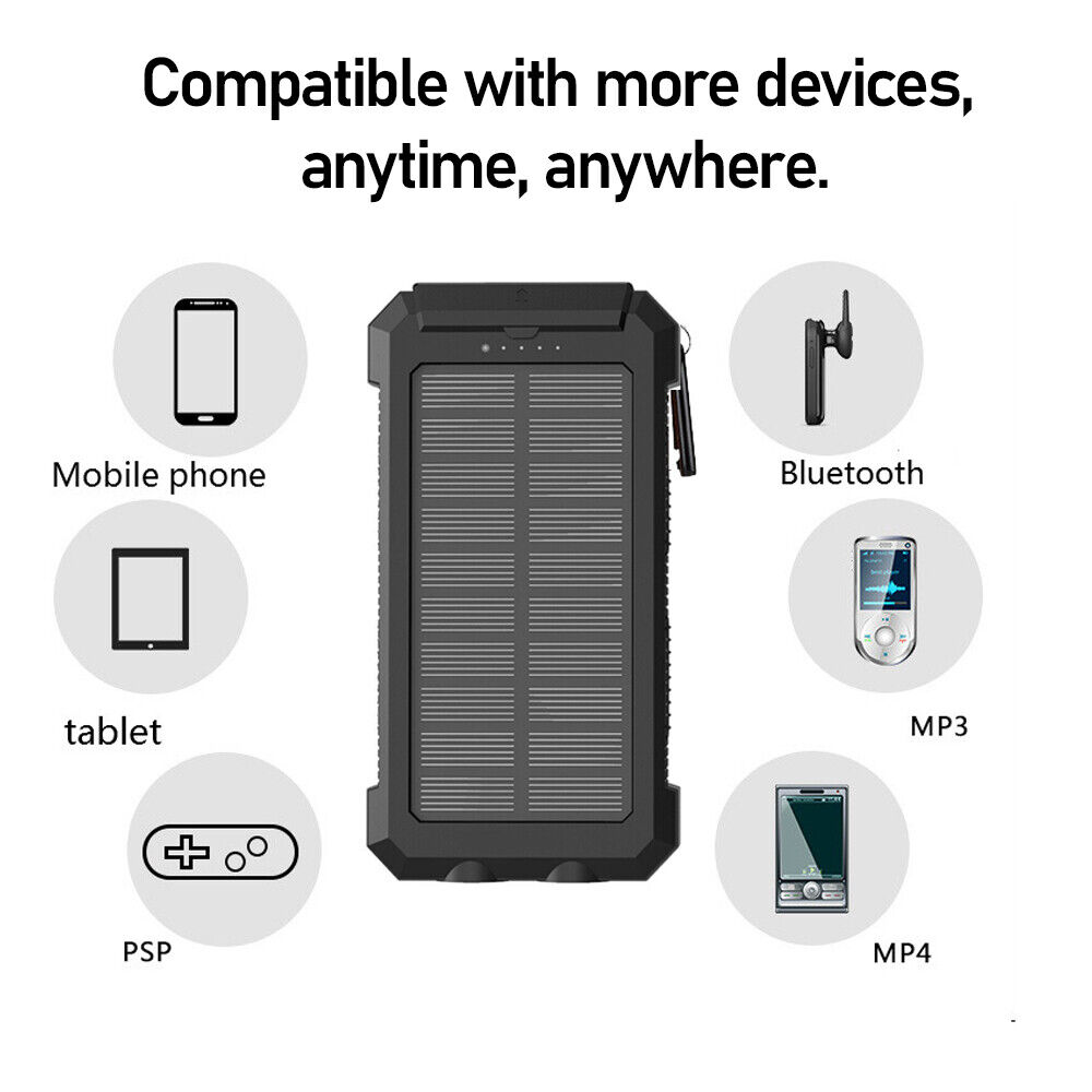 Solar Power Bank Waterproof 2USB LED Battery Charger For Cell Phone